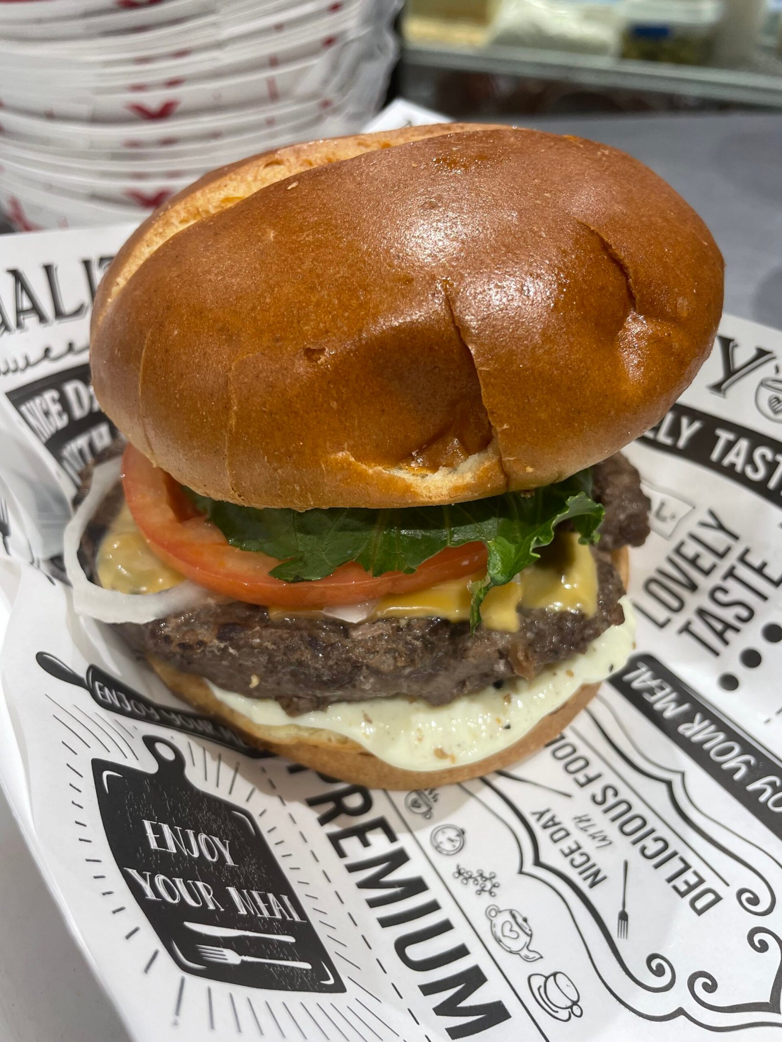 Grilled chicken, provolone, lettuce, tomato & mayo on a brioche bun.